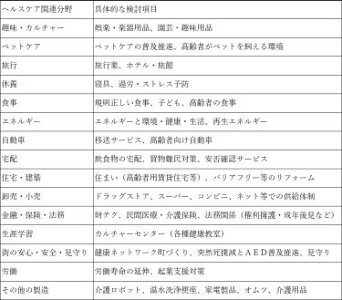 以下では、ヘルスケアに関連する産業の代表例・具体的な検討項目について、「医療」「健康」「生活」の分野区分ごとに紹介します。
