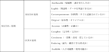 なお、日本のGMP省令では、ALCOA原則にCCEA原則を加えたALCOA+原則に基づいたデータインテグリティの担保が求められています。